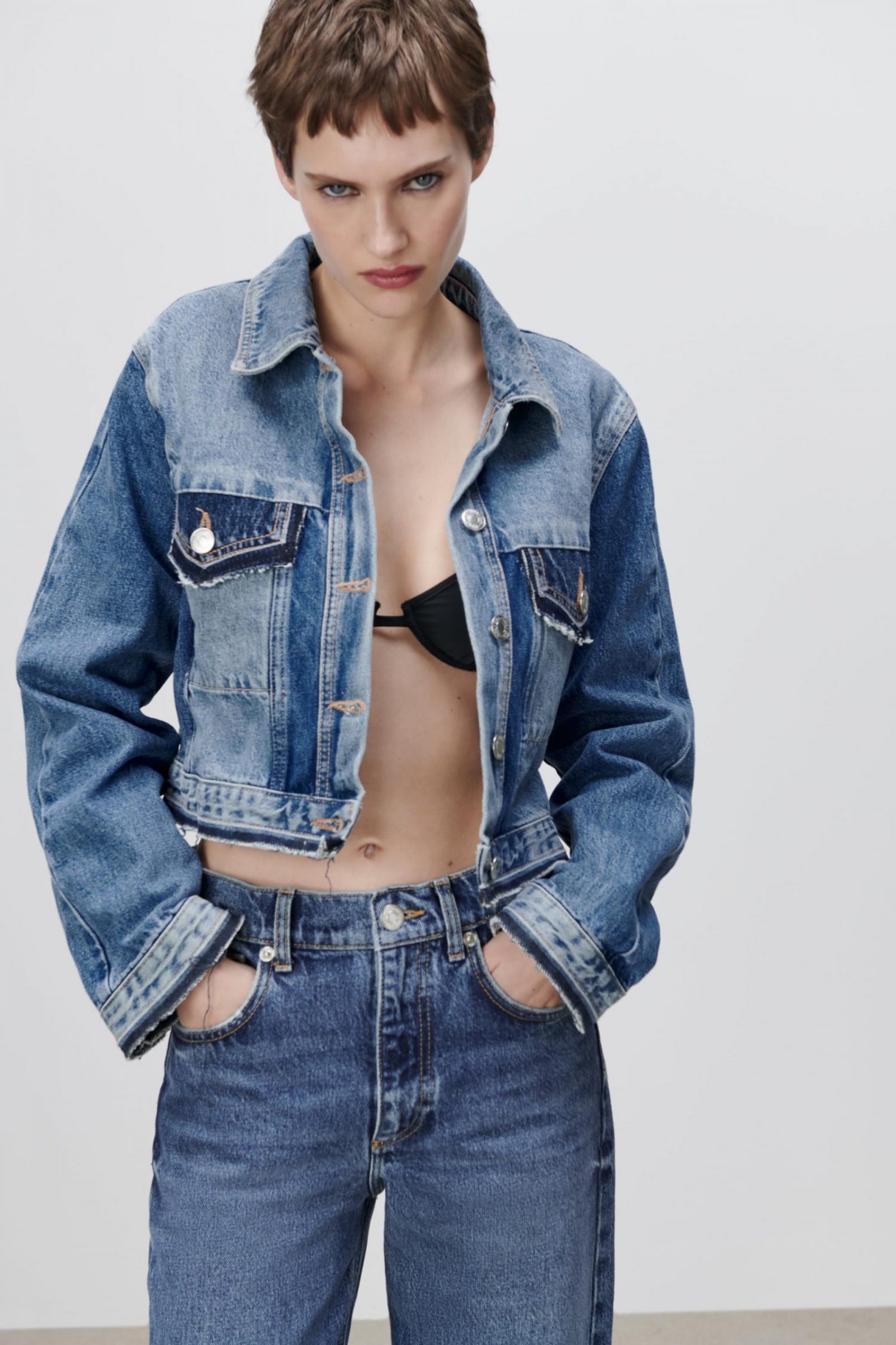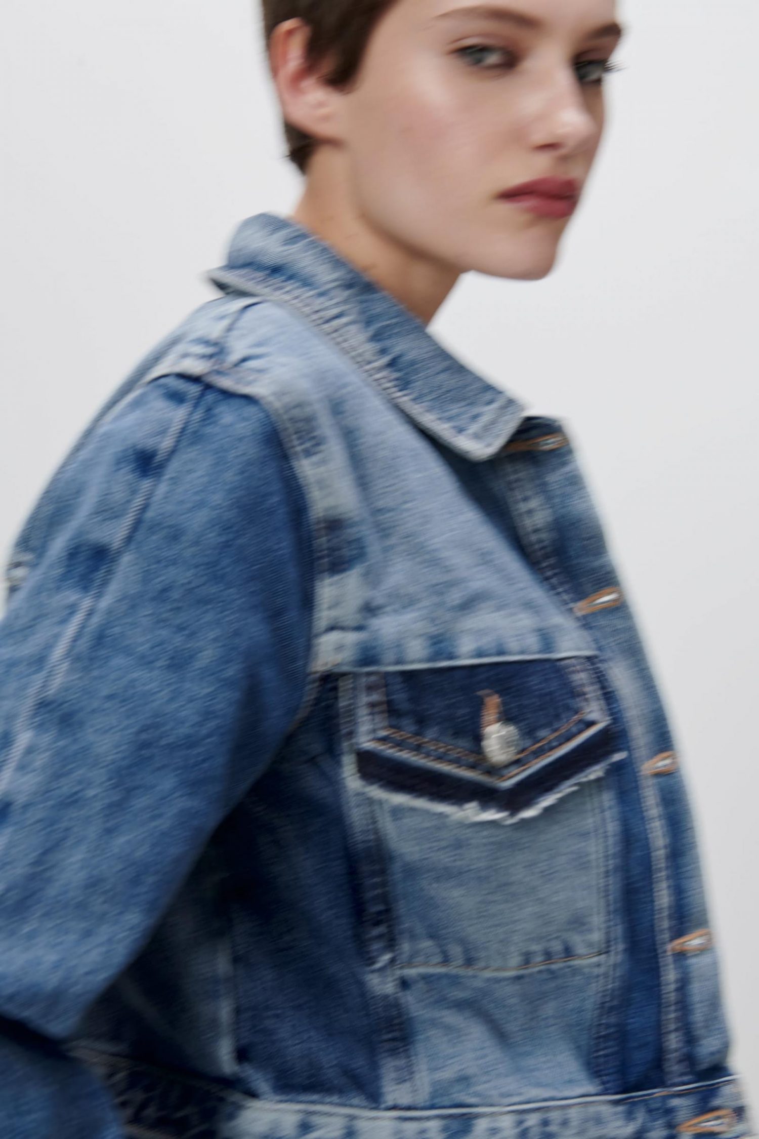 CAZADORAS & SOBRECAMISAS Mujer | ZARA CAZADORA PATCHWORK COLLECTION Azul